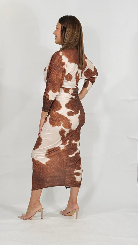 Sold outDallas Cow Print Midi Dress