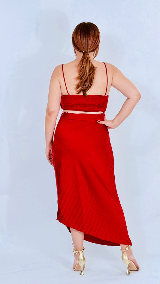 Juliana's Red Pleated Cut Out Dress