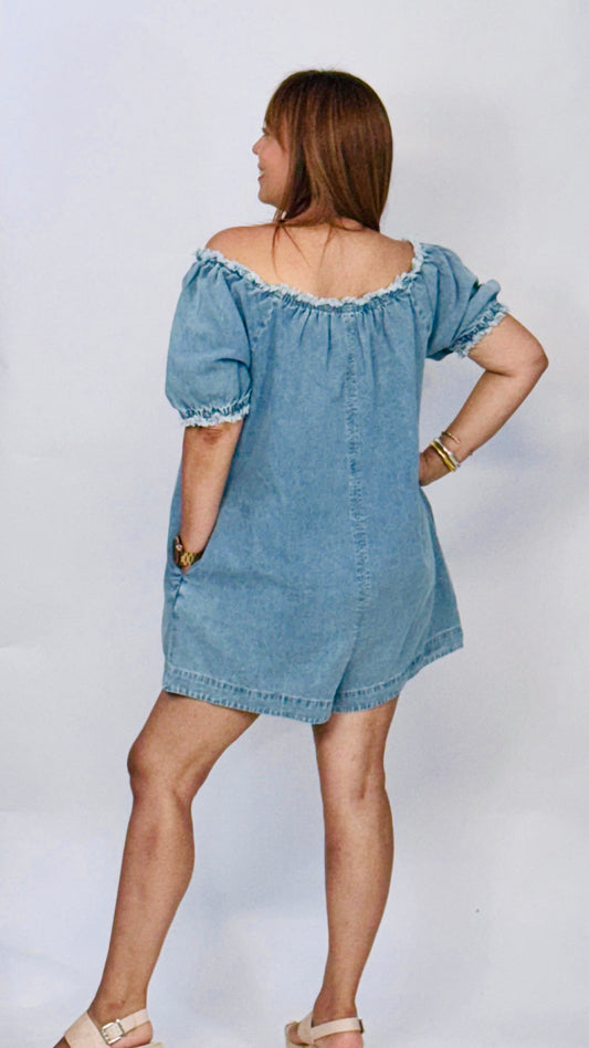 Estela's Off Shoulder Denim Romper